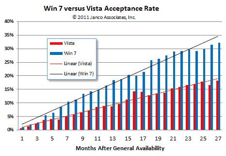 In addition, Windows 7 has a much higher acceptance rate than Vista.
